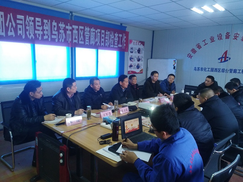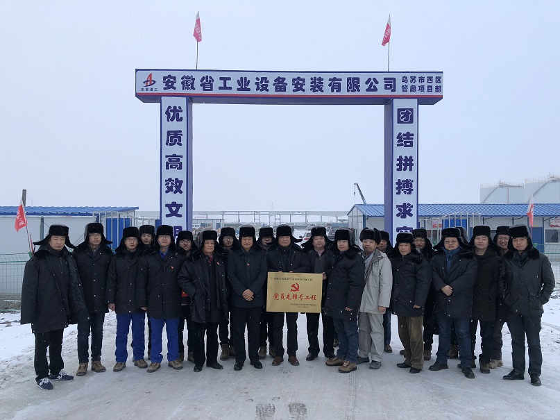 2018年1月12日,集團(tuán)公司黨委副書記牛曙東、紀(jì)委書記宋志華、黨委工作部主任徐文聯(lián)一行,在零下20度天氣,冒著凜冽的寒風(fēng),迎著飛舞的雪花,踏著濕滑的道路,蒞臨安徽安裝公司新疆烏蘇市工業(yè)園西區(qū)管廊項(xiàng)目驗(yàn)收“黨員先鋒號”工程創(chuàng)建工作并舉行授牌儀式。集團(tuán)公司新疆辦事處負(fù)責(zé)人孫仁發(fā),投資公司黨總支書記余志剛,安徽路港公司副總經(jīng)理張俊,安徽安裝公司董事長、總經(jīng)理、黨委副書記王軍邦,總經(jīng)理助理、西北分公司經(jīng)理、新疆辦事處主任王軍陪同。創(chuàng)建驗(yàn)收會議由徐文聯(lián)主持。