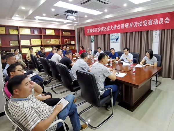為激發(fā)廣大員工的工作熱情,確保年度各項(xiàng)目標(biāo)任務(wù)順利完成。根據(jù)集團(tuán)公司開展“搶進(jìn)度、保工期、穩(wěn)預(yù)期、促提升”為主題勞動(dòng)競賽活動(dòng),安徽安裝安慶分公司從2019年10月1日—2020年1月10日開展“大干100天”勞動(dòng)競賽。2019年9月28日下午,公司紀(jì)委書記、工會主席李寬旭,安慶分公司管理人員和施工班組長共30多人參加了“大干100天”勞動(dòng)競賽動(dòng)員會。
