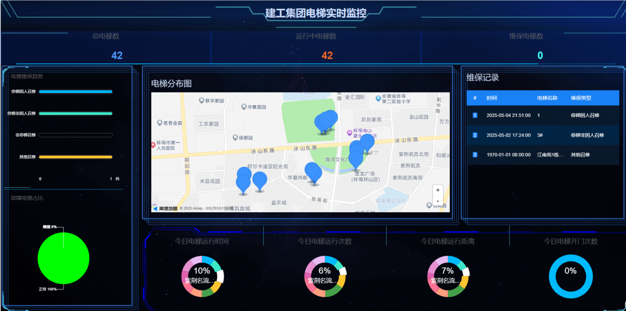 新搭建的電梯管理模塊構(gòu)建起高效的數(shù)據(jù)互通橋梁,不僅能夠?qū)崟r(shí)獲取已上線電梯編號(hào)、電梯設(shè)備名稱(chēng)等各項(xiàng)基礎(chǔ)數(shù)據(jù),還能精準(zhǔn)監(jiān)測(cè)電梯運(yùn)行時(shí)間、運(yùn)行距離、運(yùn)行次數(shù)、開(kāi)門(mén)次數(shù)等動(dòng)態(tài)數(shù)據(jù)信息。該系統(tǒng)可全程追蹤電梯召修記錄,詳細(xì)記錄召修維保上報(bào)時(shí)間、電梯維保人員到場(chǎng)時(shí)間,以及電梯故障處理過(guò)程、因故障困人后的解救時(shí)間等信息。這些數(shù)據(jù)的全面整合與實(shí)時(shí)呈現(xiàn),能夠全方位、立體化掌握每臺(tái)電梯的運(yùn)行狀態(tài)及故障率,增強(qiáng)了電梯運(yùn)行的安全性和可靠性,有效提升電梯維保效率。