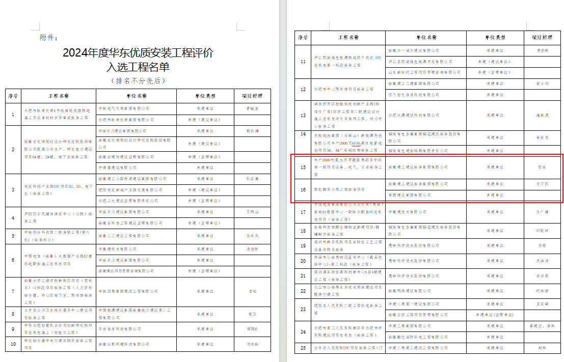 近日,2024年度華東優(yōu)質(zhì)安裝工程評價入選工程名單公布。建工安裝蚌埠分公司承建的輝隆年產(chǎn)2000噸氯蟲苯甲酰胺原藥及中間體一期項(xiàng)目設(shè)備、電氣、儀表安裝工程成功入選。