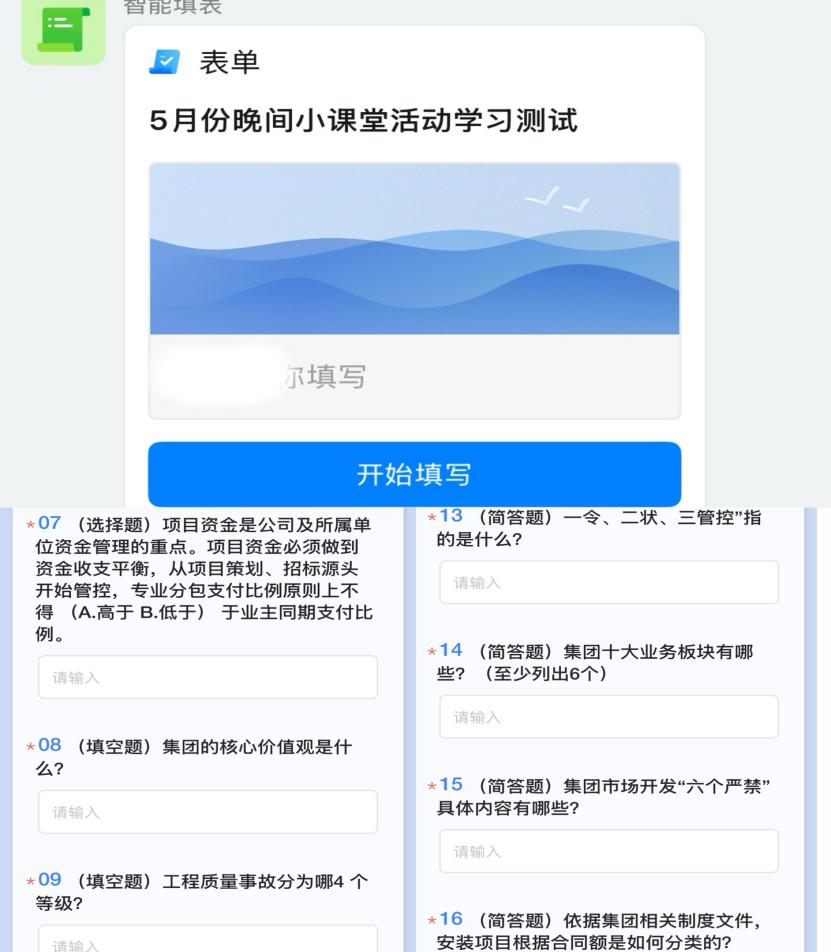 機關(guān)和各項目部學習現(xiàn)場、釘釘學習測試題填寫